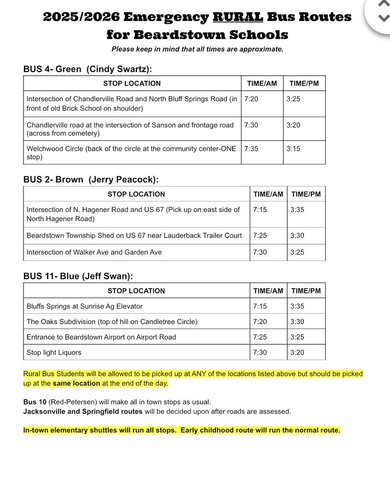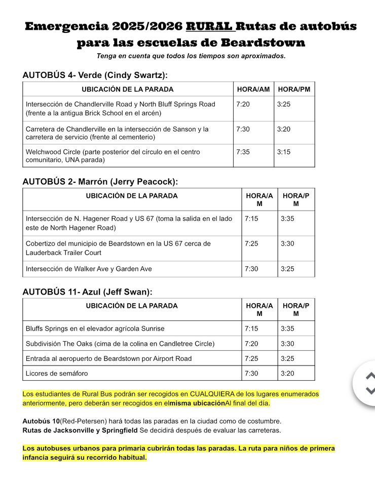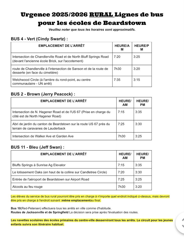 English Emergency Bus Routes Spanish Emergency Bus Routes  French Emergency Bus Routes