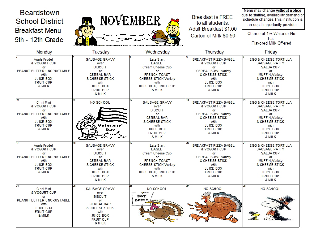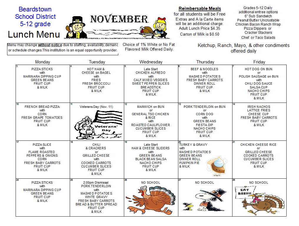 Lunch Menus Click here if you would like to sign your student up for vegetarian lunch options Price List Lista de precios Liste de prix October Breakfast Menu November Breakfast Menu October Lunch Menu November Lunch Menu